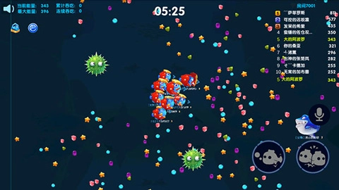 海胆是一种随机出现的中立生物。体型较大的玩家碰撞海胆会被炸裂成若干小鱼,而体型较小的则可以安全穿过。海胆的存在增加了战场不确定性,即便是最大的玩家也需谨慎应对。不过被炸裂后也能获得可观的能量奖励。