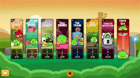 1、这里有多个章节关卡等你来体验,每个章节可使用的小鸟各不相同。