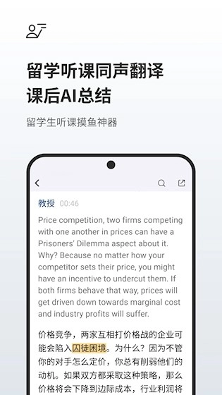 2、课堂学习辅助:学生能够录制教师的授课内容,课后借助文字梳理并回顾重点知识,这一功能尤其适用于外语类课程以及复杂难懂的知识点学习。