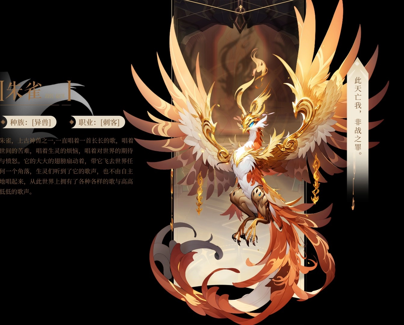 朱雀作为上古神兽之一,始终吟唱着一曲悠长的歌。歌里有世间的苦难、生灵的烦恼,也有对世界的期待与愤怒。它那宽大的翅膀轻轻扇动,便能带它飞往世界的每一个角落。生灵们听到它的歌声,便会不由自主地跟着唱起来。自那以后,世界上便有了各种各样的歌,以及高高低低的歌声。