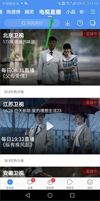 3、另外,用户还可以通过切换顶部的分页导航栏至“电视直播”选项,来观看各大地方卫视正在热播的电视剧。