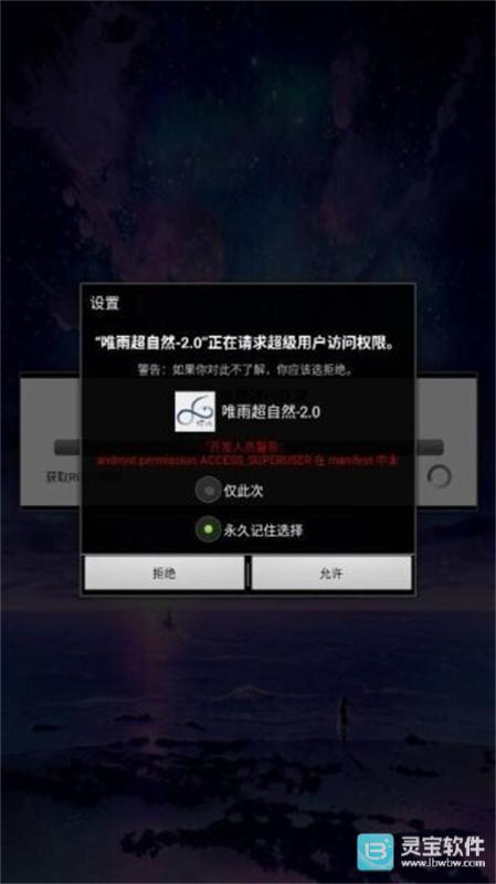 3、权限授权:按照应用给出的提示,完成ROOT权限的授权操作。首次启动应用时会弹出超级用户权限请求,建议勾选“永久记住选择”选项,这样后续使用就能自动完成授权了。