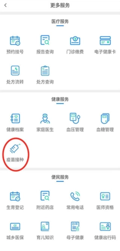5、【计划免疫】 支持在线查看疫苗接种记录、查询周边接种点,同时提供在线接种提醒服务。