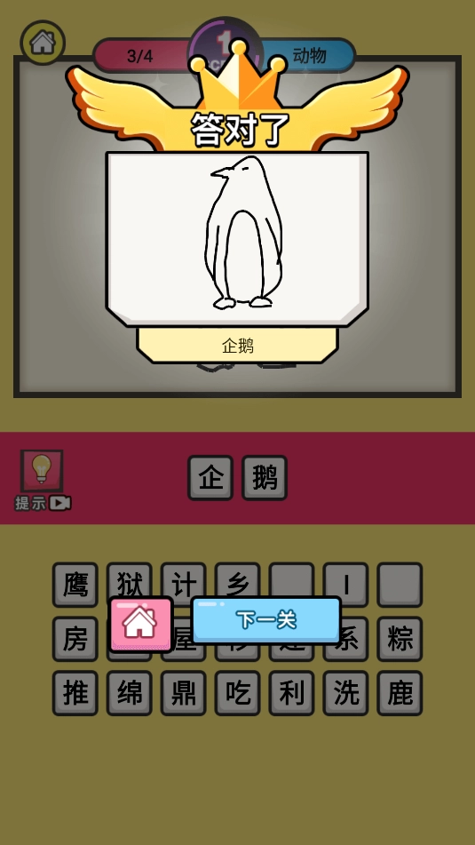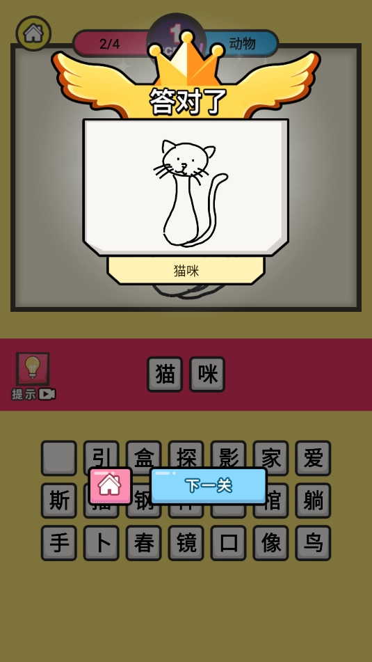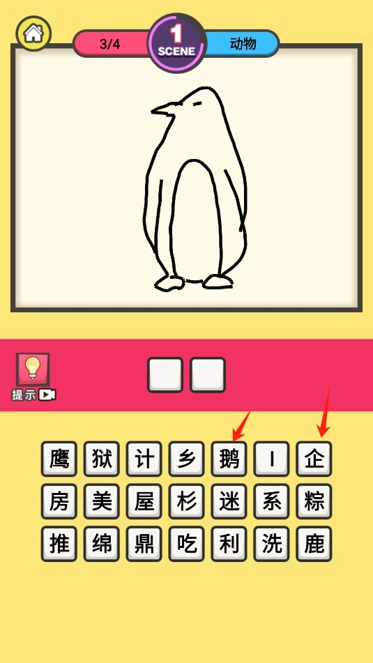 2、游戏中,根据系统画出来的动物,选择下方的汉字。
