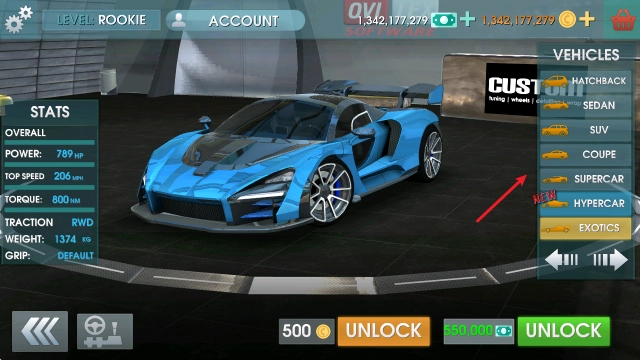 1、在主界面点击GARAGE即可进入车库,你可以在这里挑选心仪的车型完成购买。