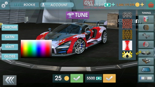 2、购买解锁后,选择CUSTOMIZE进入改装界面,在这里可以自由的修改汽车的颜色和贴纸。