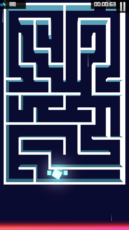 魔方会自动移动到岔路口,必须选择正确的移动方向,避免离开屏幕导致游戏停止。迷宫的难度随着你的进步而逐渐增加。