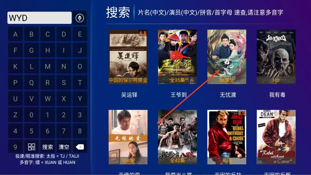 2.在左侧输入影视剧名的首字母。