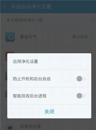 1)禁止开机启动与后台自启(防止墨迹天气在设备开机或后台运行时自动启动)
