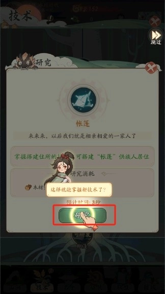 11、进入研究界面解锁帐篷建造技术。