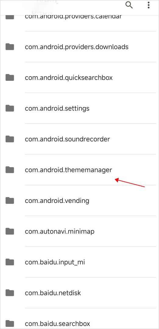 5、点击右上角菜单,确认已勾选显示隐藏文件,找到对应应用文件夹