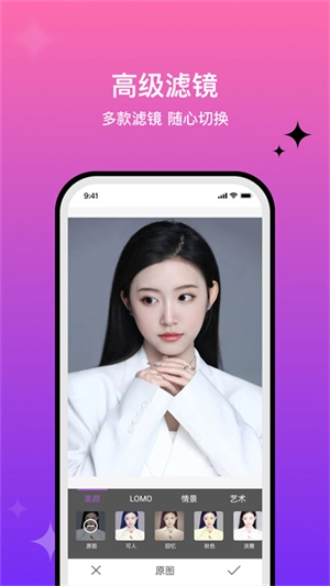 实时特效相机,支持多种经典滤镜即时预览,随时随地拍出具有艺术氛围的照片。