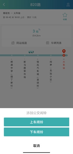 2、可以不断刷新该页面,获得最新情况;也可以设置公交闹铃;