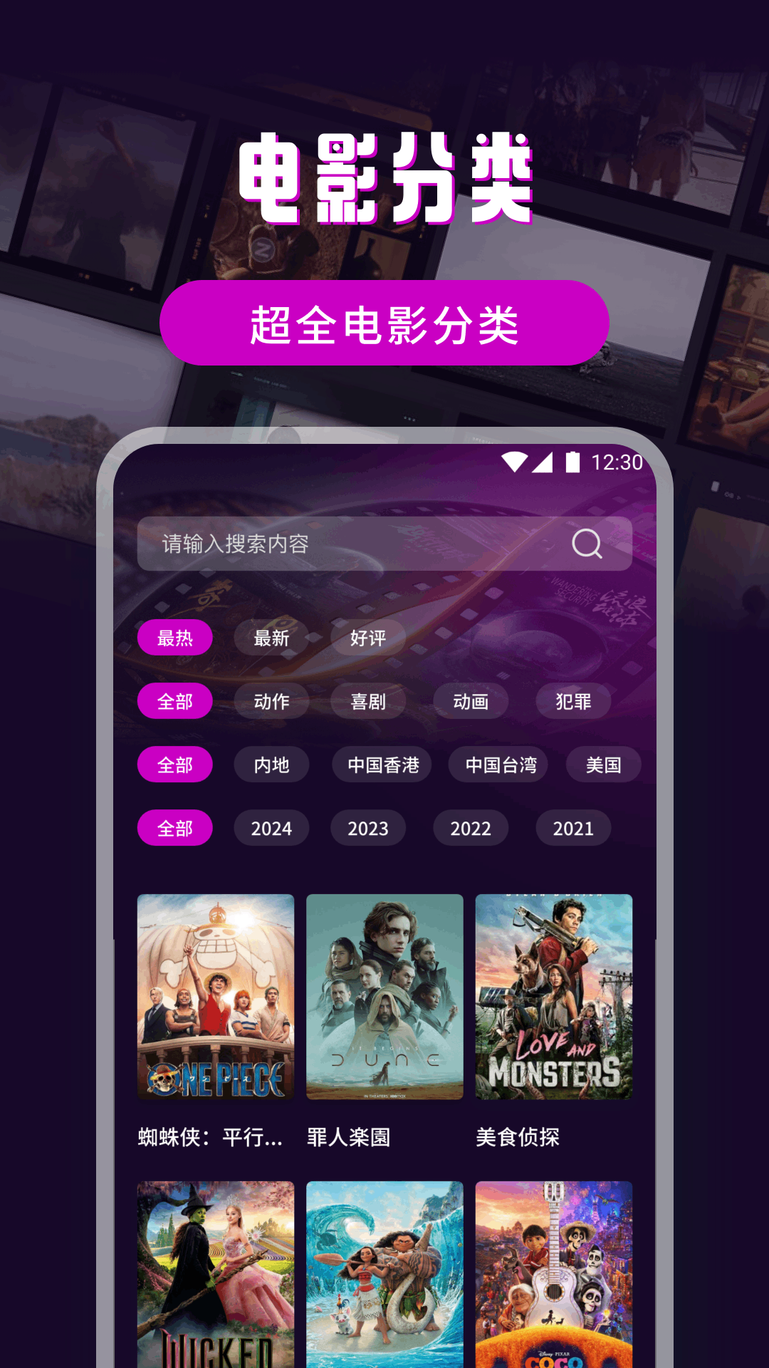 用户闲暇时可通过首页推荐随意浏览影片,挖掘感兴趣的新片;若想观看特定类型、地区或年代的影片,可通过分类导航查找;若知道特定影片、演员或导演,可通过搜索栏精准定位。