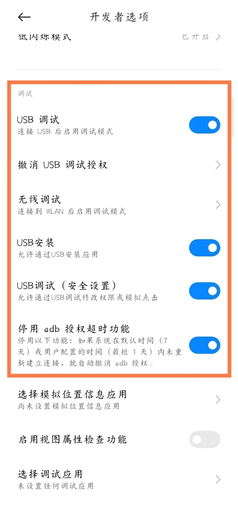 4、然后将usb调试打开。
