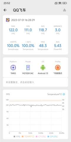 3、录制与分析帧率数据。