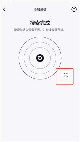 3、出现这个页面以后,由此就搜索完成了。我们也可以点击右下角【扫描】我们的手表二维码。