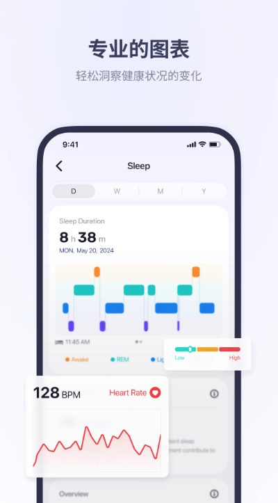 在健康管理领域,该软件拥有全天候的健康监测功能。借助深度睡眠分析模块,能够获取睡眠周期的精准解析及改善方案,从而提升睡眠质量。