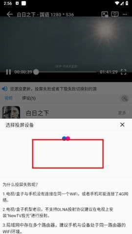 4、注意,务必确保手机端和电视端处于同一wifi下,否则无法搜索到投屏后的结果。