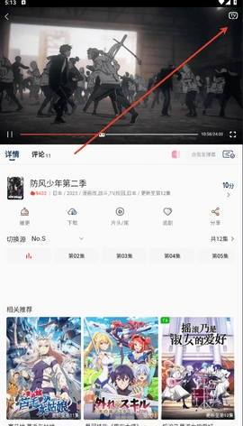 1、先播放一个你喜欢的动漫,点击右上角的投屏