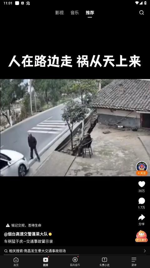 2、切换至视频频道,观看各类精彩短视频;