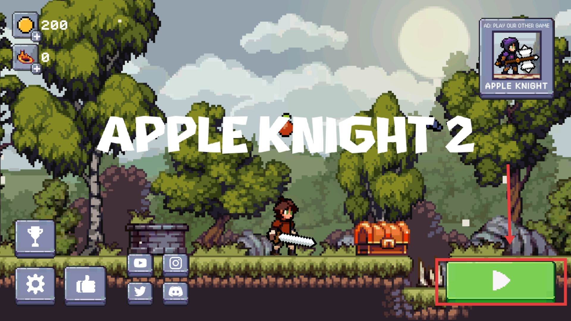 1、进入【AppleKnight2】的主界面后,点击那个绿色的开始按钮,就能开启这场像素风格的冒险之旅啦——你可以探索神秘的地下城,收集各式各样的装备,以此来提升自己的战斗能力。