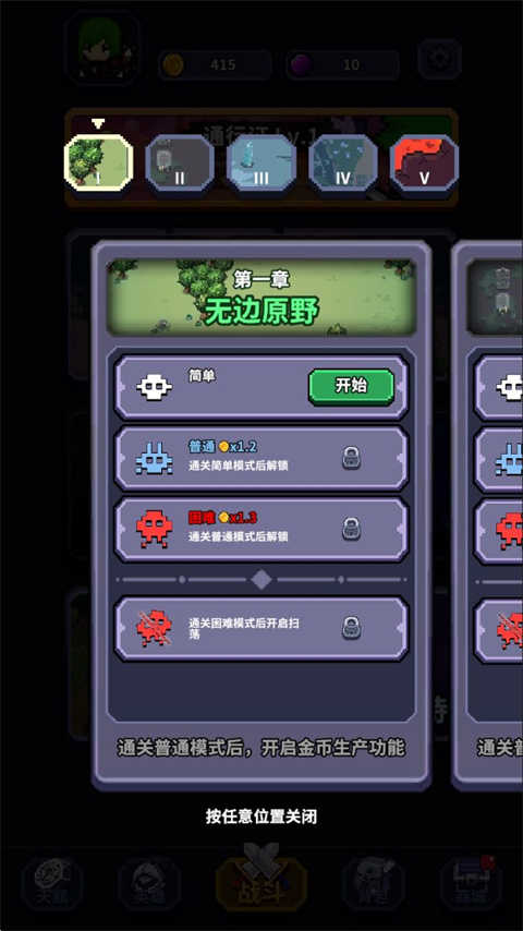1、进入最终黎明后,你会邂逅各式各样丰富的玩法内容,我们把主线关卡当作开端,开启一段全新的冒险旅程。
