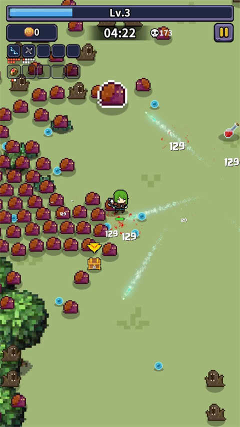 7、随着游戏不断推进,屏幕上会慢慢出现越来越多的魔物,只有精准的操作和强大的技能,才能助你从层层包围中成功突围。