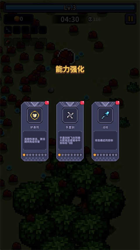 5、每次升级都会出现随机能力供你挑选,只要合理搭配各项技能,就能快速提升战斗能力,从容面对更严峻的挑战。