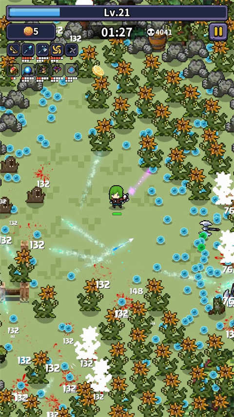 3、游戏采用像素画风,更多技能装备搭配,组合技能满地图移动走位,刷怪闯关。
