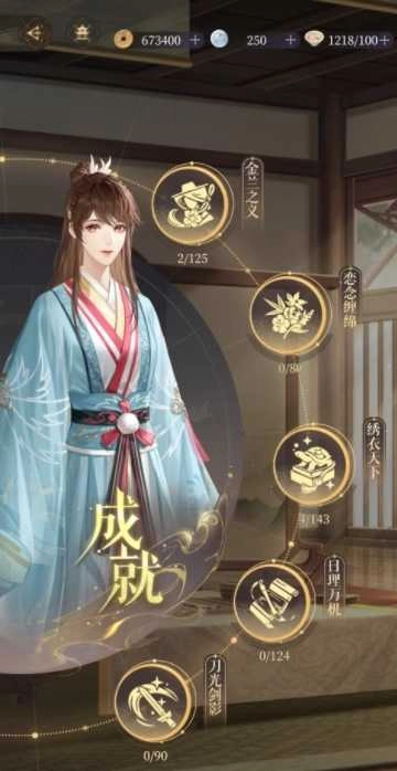 游戏里的成就共划分为金兰之义、恋念缠绵、绣衣天下、日理万机、刀光剑影这五个类别。达成成就后,能够获取所属分类的积分,以及五铢钱、白金币、提升好感度的道具、用于培养密探的交易类道具、各类称号等奖励。当某一分类对应的积分累积到特定数值时,还可以领取白金币、符传、专属称号、个性头像框之类的积分专属奖励。