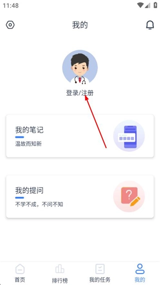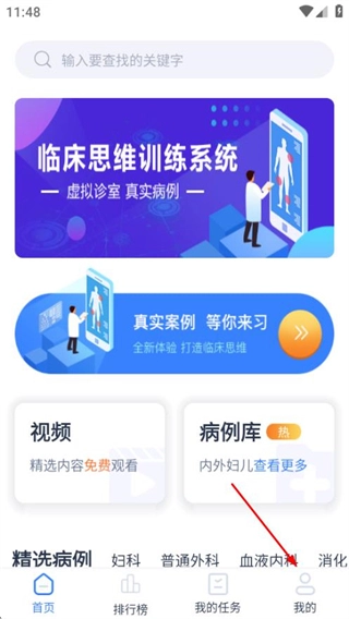 1、在临床思维训练的首页,点击底部的我的选项,进入个人中心页面。