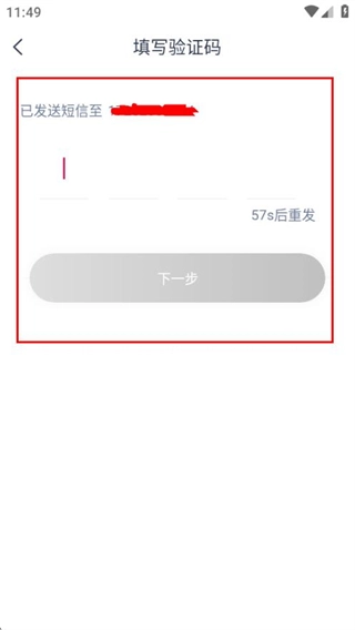 5、在验证码填写页面,输入收到的验证码后点击下一步,完成注册流程。