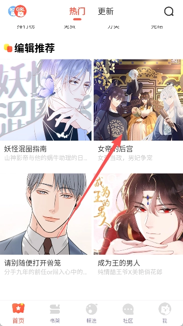 3、然后需要点击漫画的封面,即可进入到详情页面。