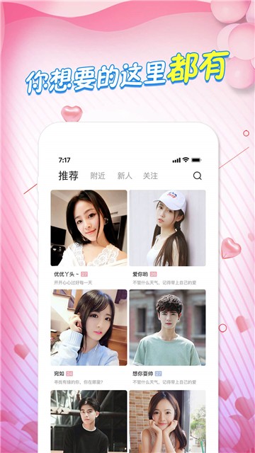 海量选择:同城在线附近人,实时推送,邂逅心仪的TA。