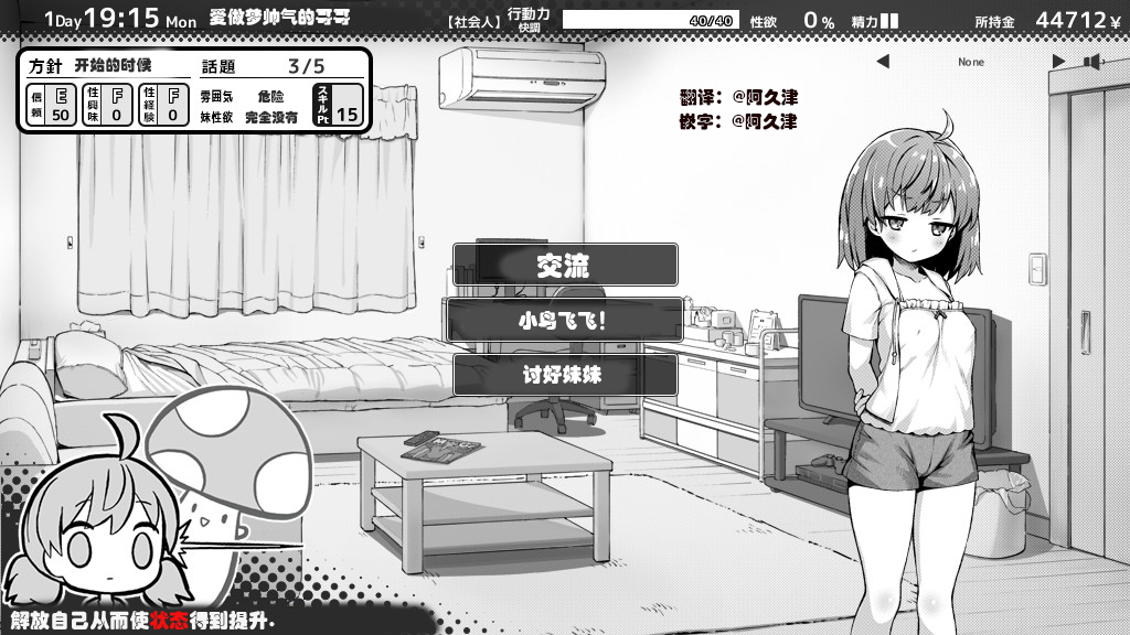 3、 心情和信赖值:保持好心情和与妹妹的信赖值是游戏中的重要因素。玩家可以通过讨好妹妹、给她吃零食等方式提升她的心情和信赖值。