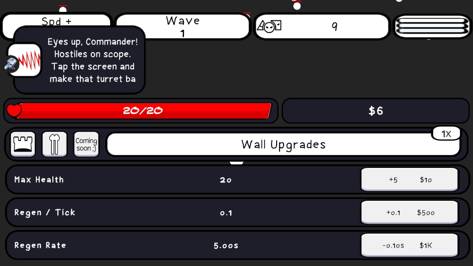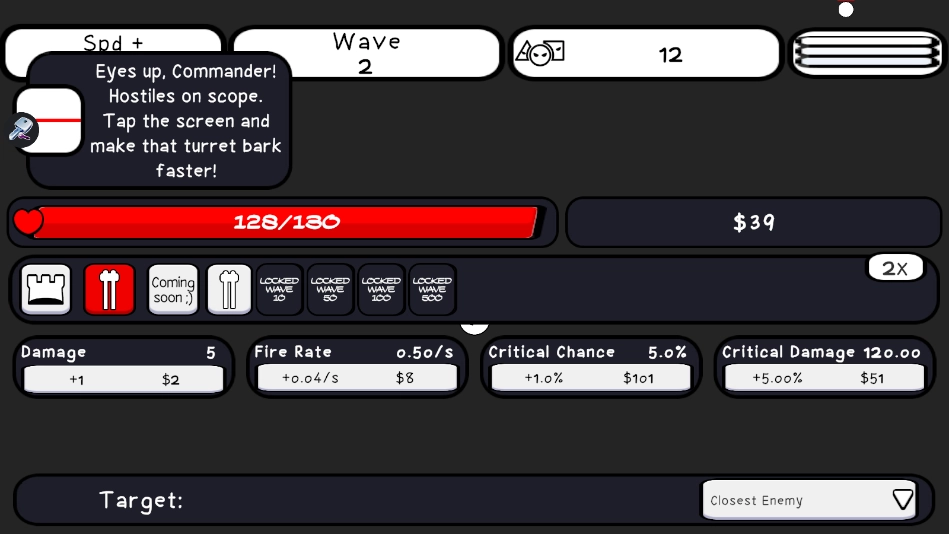 1. 玩家能够在防守红线的后方放置各式各样的武器。每一种武器都能够借助金币来提升攻击力、射速以及射程。能否合理地分配资源,是顺利通关的关键所在。