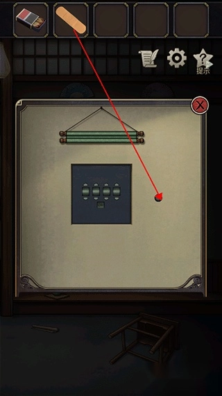 2、回到主场景向右切换,在地上板凳的底部可以找到一个物品创可贴。