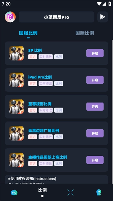 1、打开小茂画质Pro,点击比例。