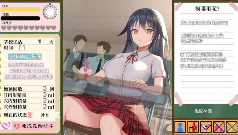 时间停止学校游戏汉化作为一款备受男生青睐的SLG游戏,带您进入一个奇幻的校园世界。您将拥有让时间静止的超凡能力,而这股力量源自您与校内女孩们的不断互动与追求。每次与她们的交流和共同经历,都能为您累积能量,从而恢复时停技能。这不仅是能力的成长,更是一段青春浪漫的校园故事。若您想感受这份独特魅力,不妨立即下载,亲自探索这个奇妙世界。