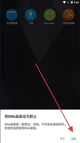 1、打开DNA桌面,点击【设为默认桌面】选项。