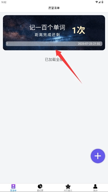 4、已创建的愿望会显示在列表中,点击对应条目即可进行每日进度打卡记录。