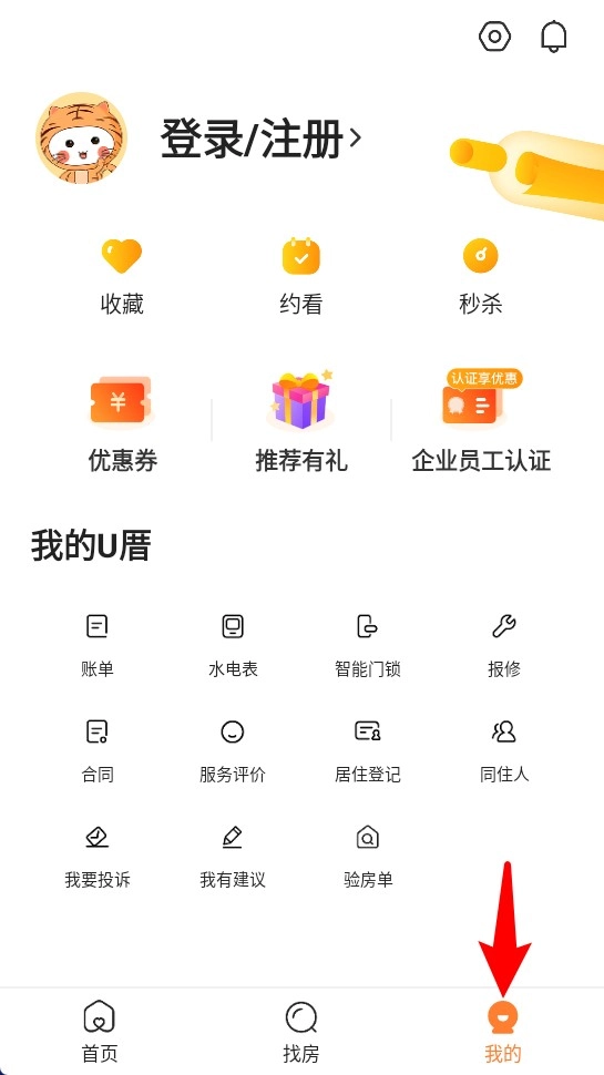4、进入“我的”页面,可查看收藏、预约、优惠等信息,还能使用水电账单查询、智能门锁管理等功能。