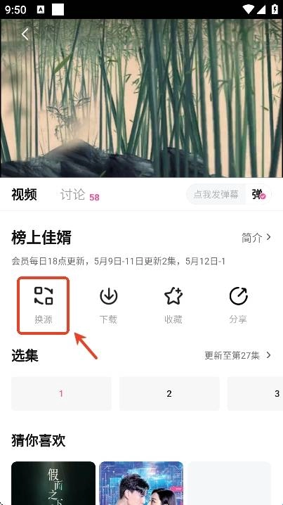 3、如果出现播放卡顿的情况用户们可以点击“换源”,切换到其他可用线路。