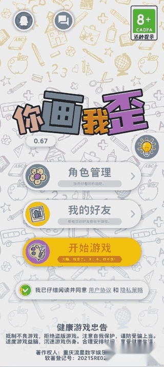 《你画我歪》是一款画风极为精致的休闲游戏。在游戏的多样情节画面中,玩家能体验到十分丰富的趣味玩法与剧情内容,这些元素让游戏画风更显多元。游戏里,玩家需要依据前几位画手的作品来猜测对应的词条,接着继续完成作品相关内容,这样后续玩家才能延续这一玩法,从而让游戏难度呈现出逐步递增的效果。
