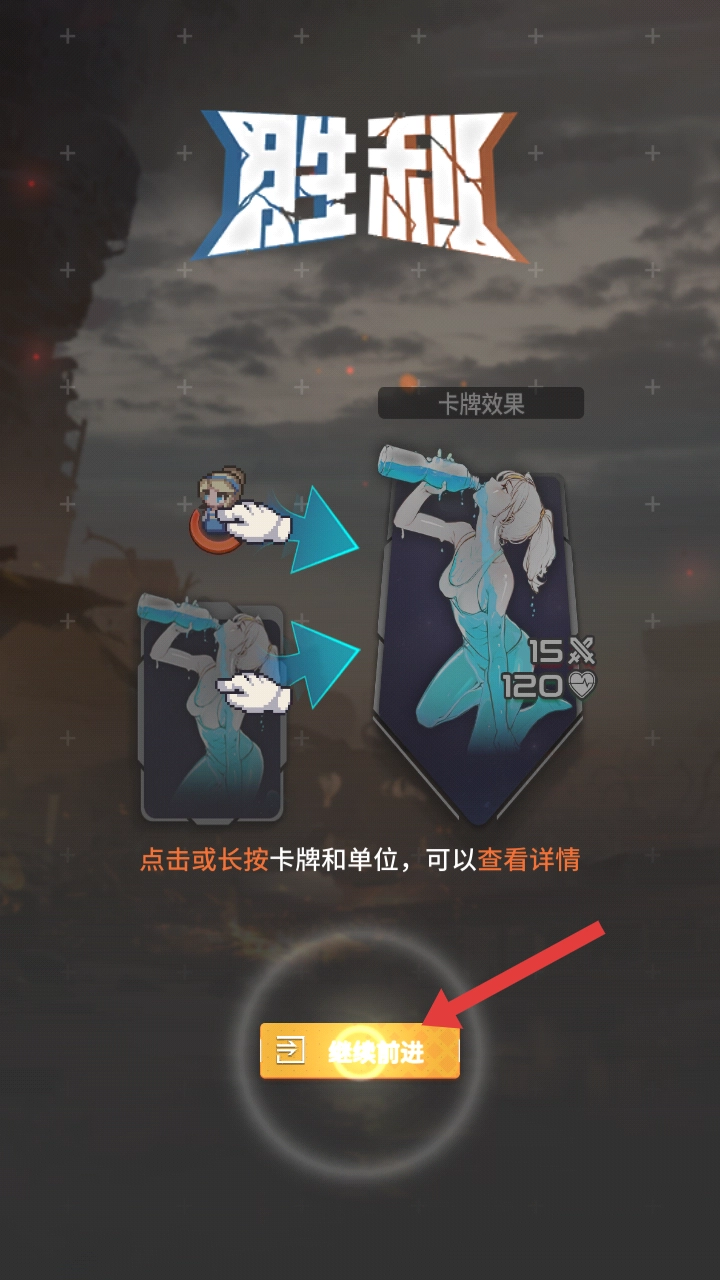 5、战斗胜利后点击【继续前进】按钮,解锁下一关卡剧情。