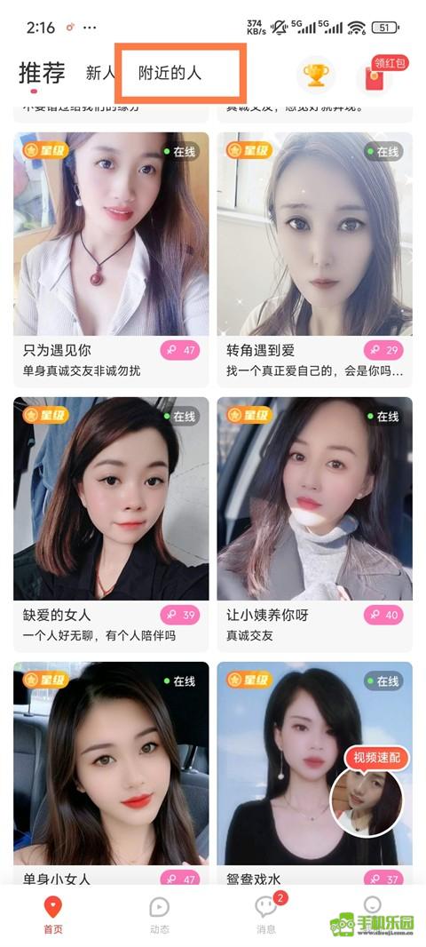 2、随后系统就会根据你的定位为你推荐附近的人,点击你感兴趣的