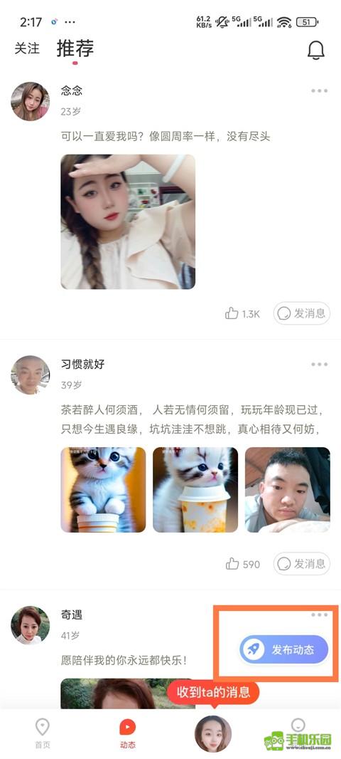 5、除此之外,软件内还能发布动态,把你的优点发出来更容易吸引优质单身小哥哥小姐姐