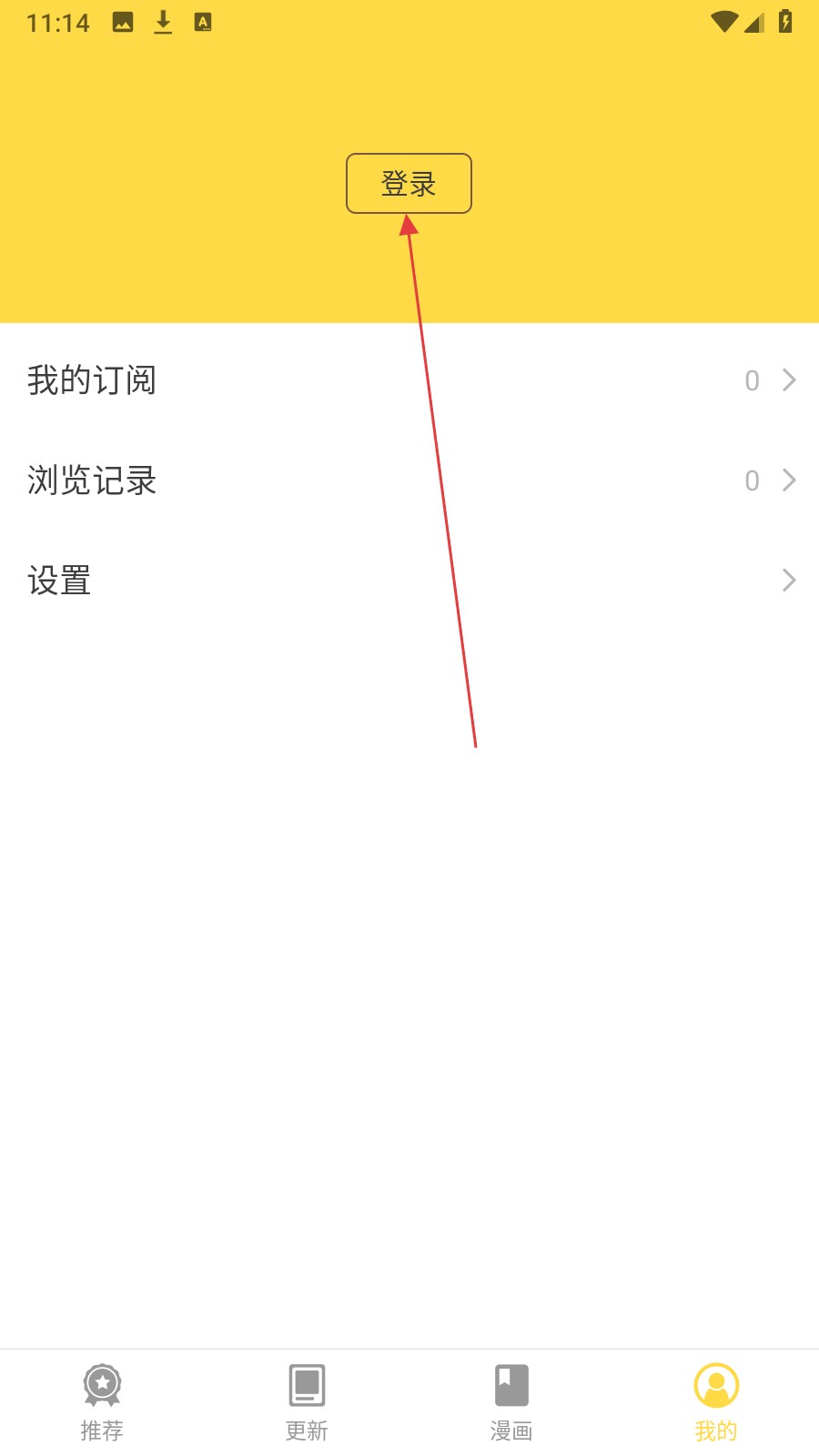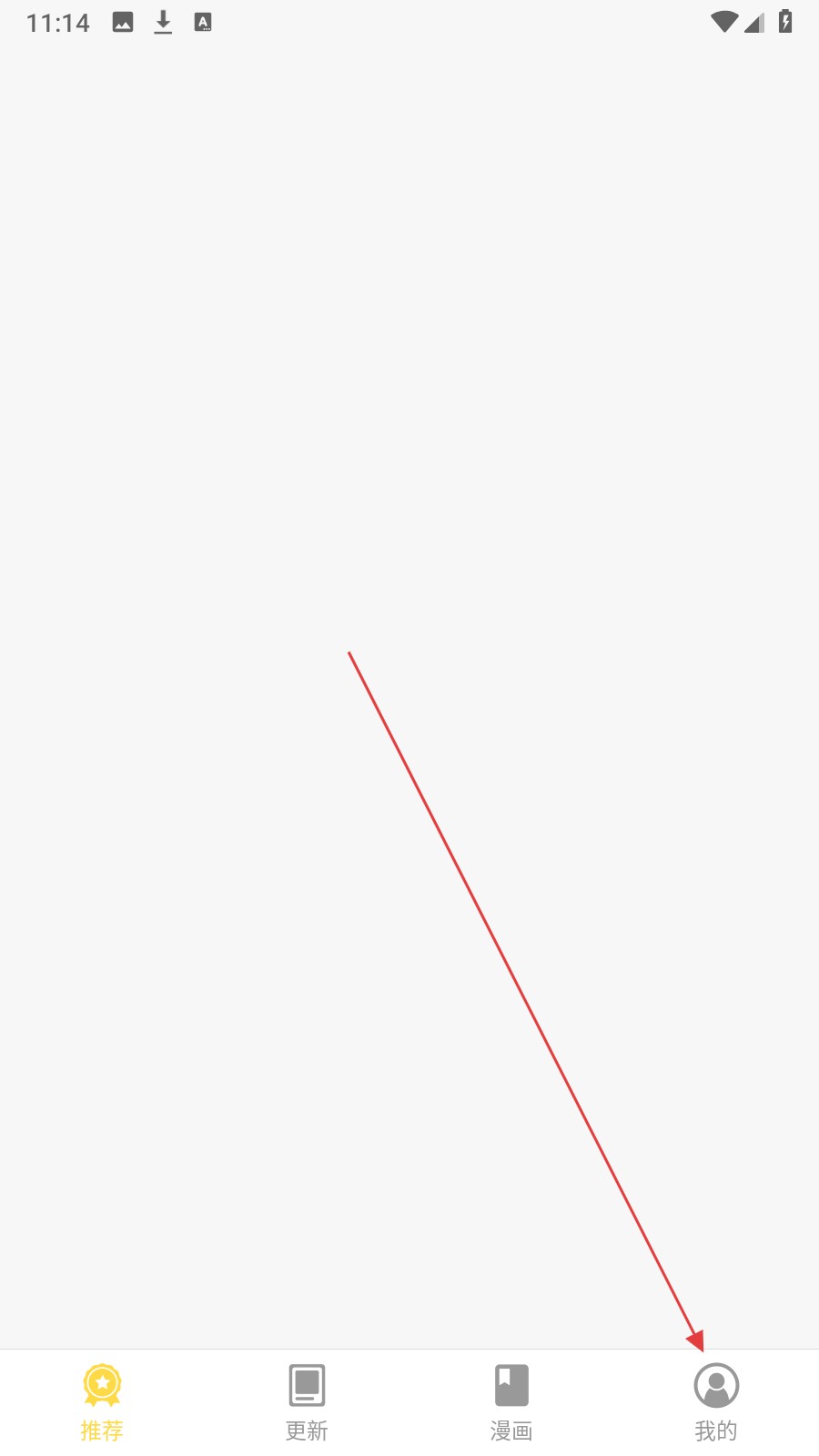 在推荐页面,点击底部的【我的】按钮,即可进入个人页面。