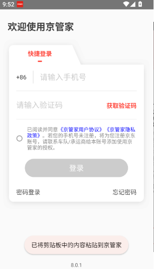 1. 打开京管家应用,先点击同意相关条款,接着点击“注册”按钮。要是已经有京东账号,就能直接登录;要是没有的话,就点击“立即注册”选项。